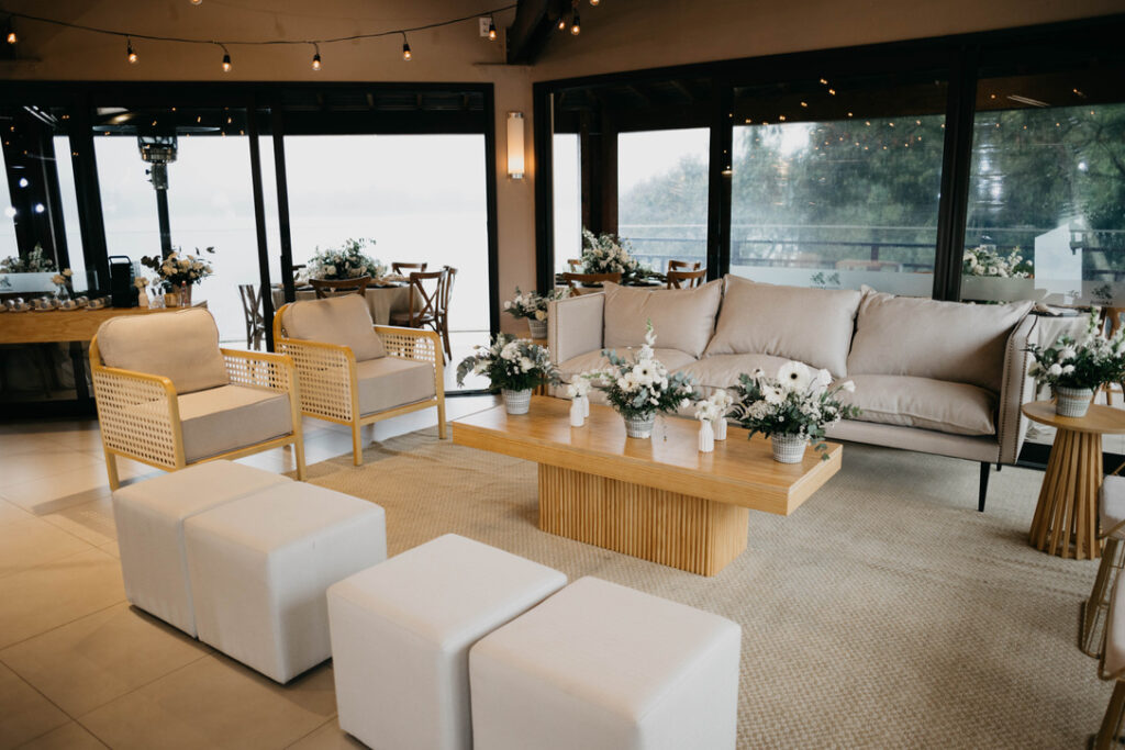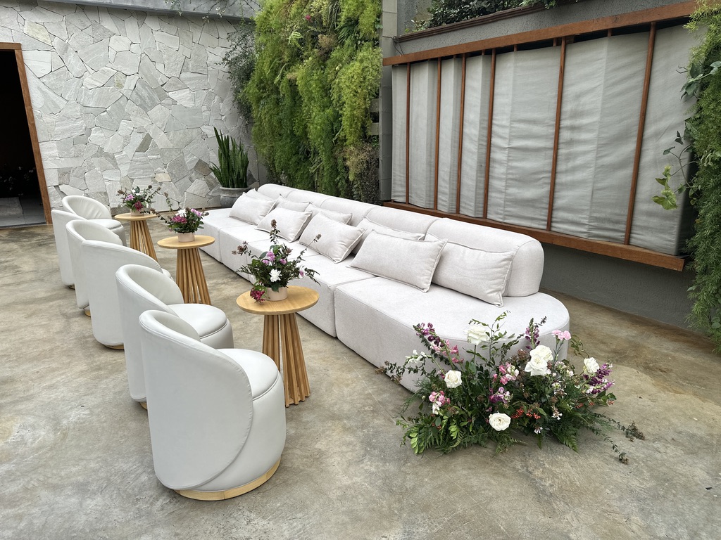 - Casamentos: sofás e poltronas em linho claro criam um clima suave e elegante para lounges e áreas de recepção.