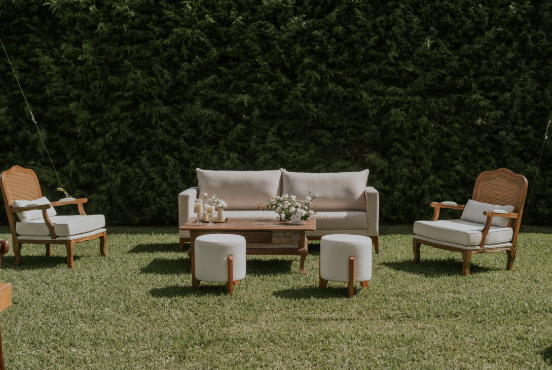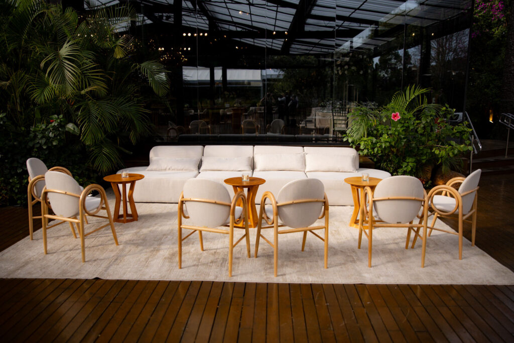 - Eventos ao ar livre: móveis em linho se integram ao cenário natural e reforçam a sensação de leveza e conforto.